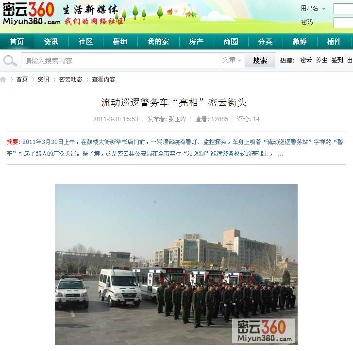 密云360網(wǎng)報(bào)道:流動(dòng)巡邏警務(wù)車“亮相”密云街頭