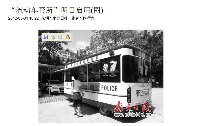 南方日報訊 (記者/林涌浩 通訊員/鄧閩榕)你是否因為周一到周五要上班,辦理不了駕駛證行駛證補換證業(yè)務(wù)而發(fā)愁?你是否因為車管所遠離市區(qū)要為補換證件奔波而煩惱?6月1日,惠州市流動車管所(見右圖,梁維春攝)將啟用,屆時市民每逢周六日在市區(qū)便可快捷的辦理駕駛證、行駛證補換等業(yè)務(wù)。
