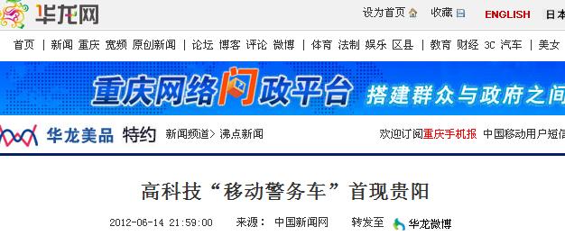 中國(guó)新聞網(wǎng)報(bào)道:高科技鴻馬“移動(dòng)警務(wù)車(chē)”首現(xiàn)貴陽(yáng)