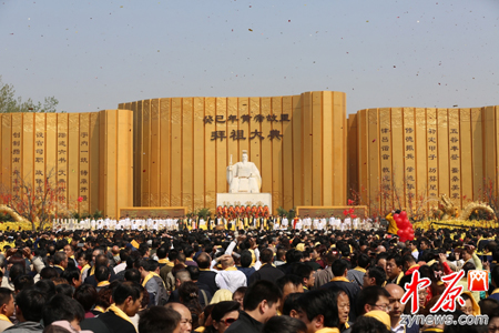 春天的中原大地,惠風和煦,萬物復萌,生機盎然。2013年4月12日,農(nóng)歷癸巳年三月初三上午,備受全球華人關(guān)注的癸巳年黃帝故里拜祖大典在新鄭市隆重舉行。來自海內(nèi)外的各界嘉賓近萬人親臨盛典,拜謁中華民族的始祖軒轅黃帝,共同祈福中華民族偉大復興。