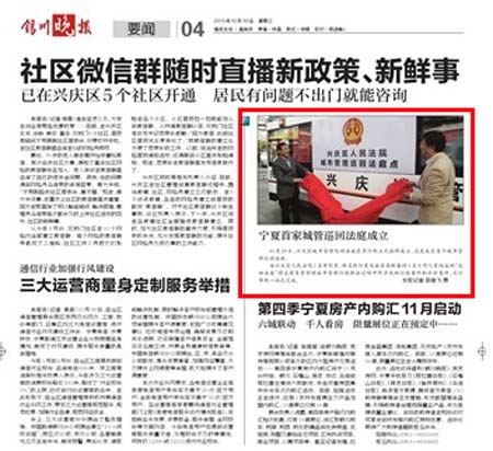 銀川晚報報道:寧夏首家城管巡回法庭成立