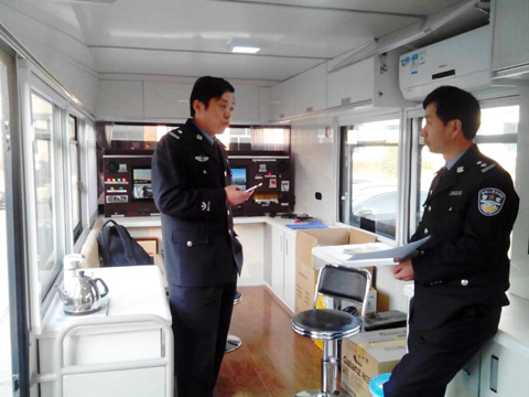 據(jù)悉,此次交付盱眙縣公安局的這臺(tái)鴻馬移動(dòng)警務(wù)室既有交通管理、受理110報(bào)警求助、緊急查控、突發(fā)事件現(xiàn)場(chǎng)取證等功能,又有開(kāi)展便民服務(wù)、法律宣傳、提供法律咨詢等職能,這樣它可以幫助公安機(jī)關(guān)實(shí)現(xiàn)了警務(wù)工作由被動(dòng)向主動(dòng)、由打擊向防控、由管理向服務(wù)的轉(zhuǎn)變,并將以購(gòu)置的這臺(tái)移動(dòng)警務(wù)室為巡邏防控管理平臺(tái),進(jìn)一步拓寬便民新渠道,切實(shí)提高群眾安全感。