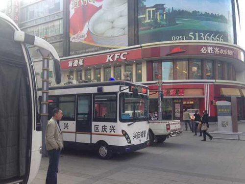 據(jù)興慶城管相關(guān)人士介紹,這種車的內(nèi)部就像一個(gè)辦公間,設(shè)有桌椅、設(shè)備儲(chǔ)存箱等;車廂后部有兩個(gè)電腦顯示屏,一個(gè)負(fù)責(zé)顯示車頂攝像頭拍攝的影像,另一個(gè)則可以辦公、打字。辦公車還可以操作開(kāi)啟警示燈,外部喇叭等,用于勸導(dǎo)占道經(jīng)營(yíng)攤販。這種辦公車是純電力驅(qū)動(dòng),充一次電可以行駛50公里,既環(huán)保又節(jié)能。