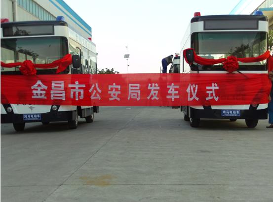 2011年5月12日下午4點(diǎn),在鄭州市森源鴻馬電動(dòng)車研發(fā)中心舉行了甘肅省金昌市金川流動(dòng)警務(wù)室的發(fā)車儀式,此次運(yùn)往金昌市的森源鴻馬流動(dòng)警務(wù)室共兩輛,都具備移動(dòng)辦公設(shè)備,LED顯示屏等,使得民警在使用過程中更加的方便,快捷,有效的對(duì)社會(huì)治安進(jìn)行治理。