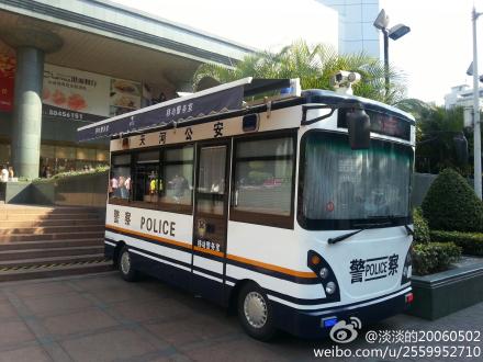 廣州天河正在執(zhí)勤的電動移動警務(wù)室
