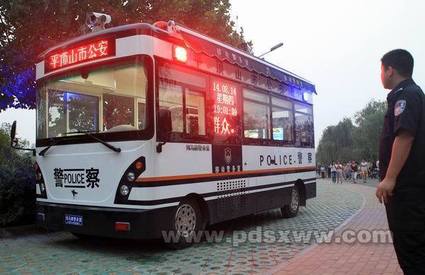 8月14日傍晚,平頂山市白鷺洲國家城市濕地公園內(nèi),一臺鴻馬移動警務(wù)室閃爍著警燈。吸引了公園群眾的目光。