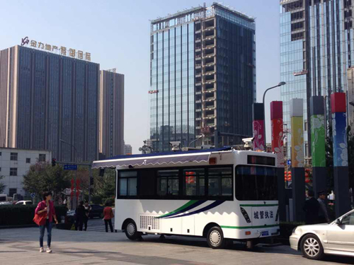 昨天,北京石景山區(qū)首輛鴻馬城管執(zhí)法站在石景山區(qū)萬達廣場開始投入使用,“零距離”為區(qū)內(nèi)企業(yè)、群眾提供服務(wù)。