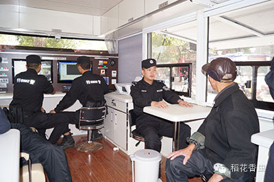 民警在鴻馬移動警務(wù)室內(nèi)執(zhí)勤