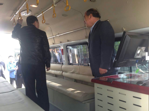 公安部黨委委員、部長(zhǎng)助理、裝備財(cái)務(wù)局局長(zhǎng)王儉(左)體驗(yàn)鴻馬防暴運(yùn)兵車(chē)