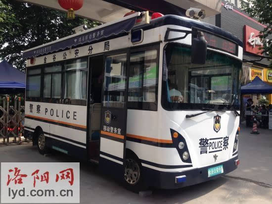 停放在洛陽市第十九中學(xué)門口的鴻馬移動警務(wù)室