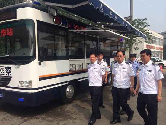 6月22日上午,一臺(tái)集檢查、堵截、布控、防范、服務(wù)、保障等多種警務(wù)功能于一體的鴻馬8米移動(dòng)工作站,在豫冀交界處京港澳高速路口亮相,河南省公安廳黨委委員、副廳長(zhǎng)吳忠華等相關(guān)領(lǐng)導(dǎo)在移動(dòng)工作站參觀體驗(yàn),對(duì)森源鴻馬公司研制的8米移動(dòng)工作站給予了好評(píng)。