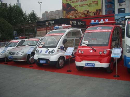 。保痹拢保叭丈衔,河南省電動汽車產(chǎn)業(yè)發(fā)展工作會議在省人民會堂召開,從旅游觀光車到警車、餐車、消防車、救護(hù)車、環(huán)衛(wèi)車等各種車型,各廠家在人民會堂廣場上展示著他們的新車型和新技術(shù)。會上,省工業(yè)和信息化廳廳長楊盛道向與會代表宣讀了《河南省電動汽車產(chǎn)業(yè)發(fā)展近期行動計劃》。明年,鄭州、新鄉(xiāng)、洛陽的百姓出行,就可以乘坐到?jīng)]有尾氣排放、沒有汽油味兒的電動公交車或長途車了。
